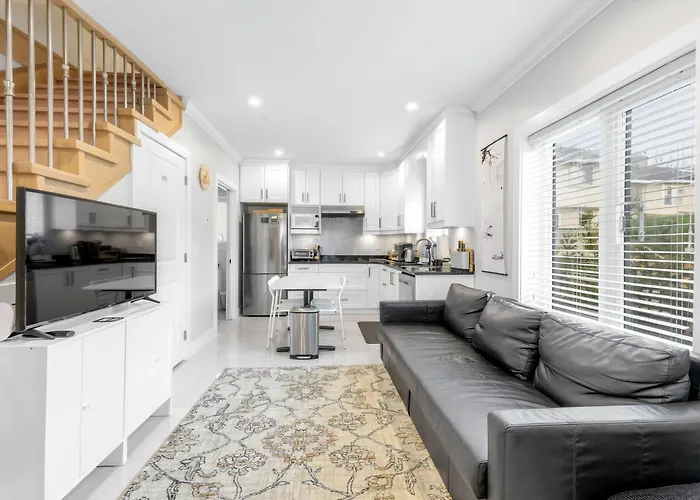O New Laneway House Near Airport, World Cup Stadium, Downtown, Ubc Vancouver de 2 quartos está situado no distrito Vancouver South, 7 km do Centro de Vancouver. Os hóspedes podem utilizar Wi-Fi para fins profissionais ou de lazer.
